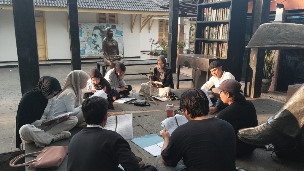 Saya membayangkan sedang duduk di bawah patung sore itu, Rabu, 9 Juli 2025. Matahari sore cerah menyinari kota yang (relative) kecil ini, Rangkasbitung. Beberapa Kawan duduk melingkar di dekat Sepatu Multatuli. Ini pekan keempat puluh kami berjumpa. Membaca pelan novel tebal karya Magnum Opusnya Pramoedya Ananta Toer: Arus Balik.